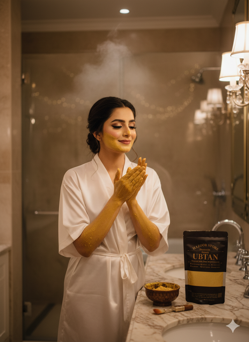- Take 2–3 spoons of Ubtan.
